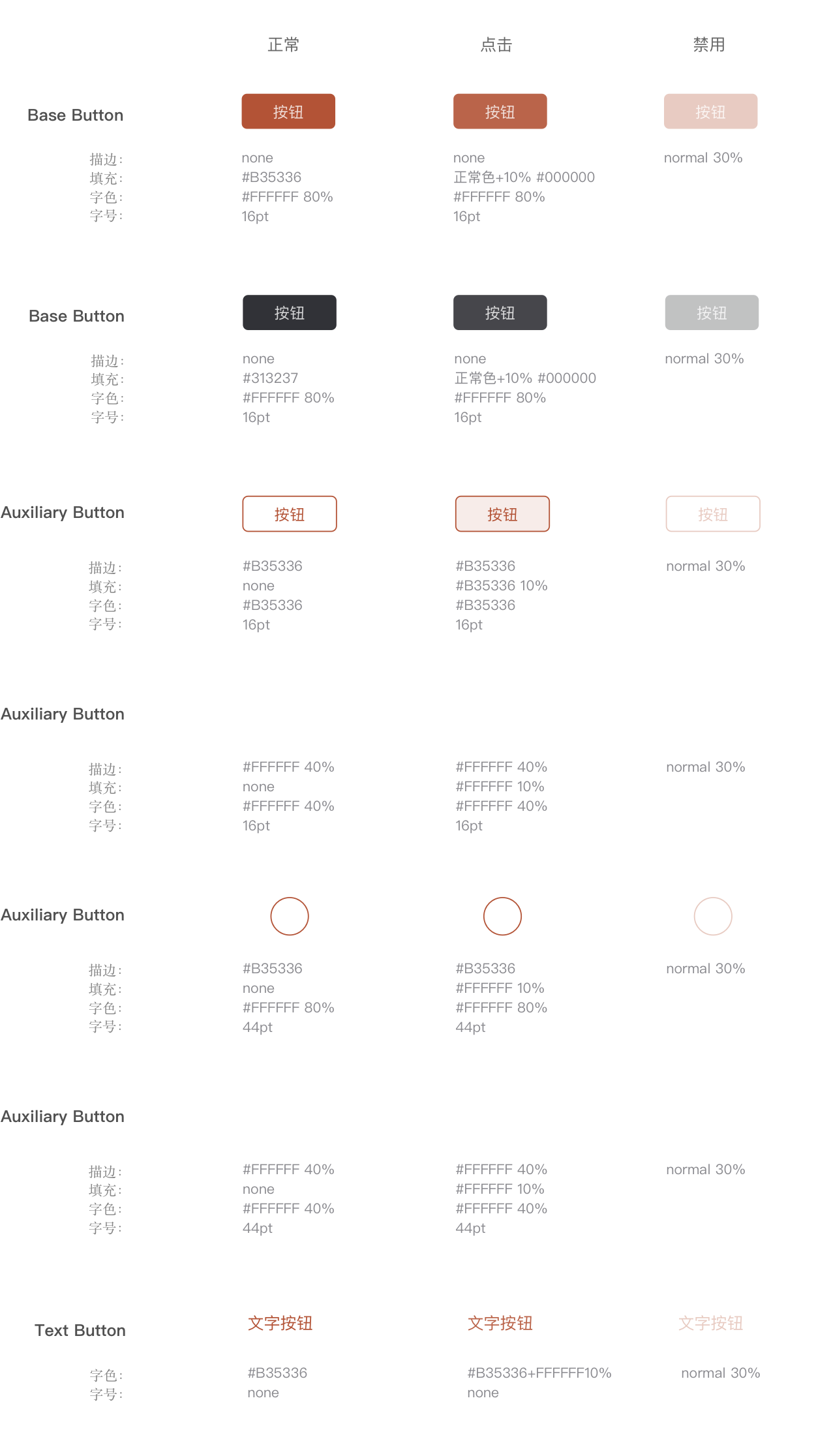 点击状态: 按钮点击时的反馈状态(所有点击状态底色均为正常效果下叠加白色 10%)