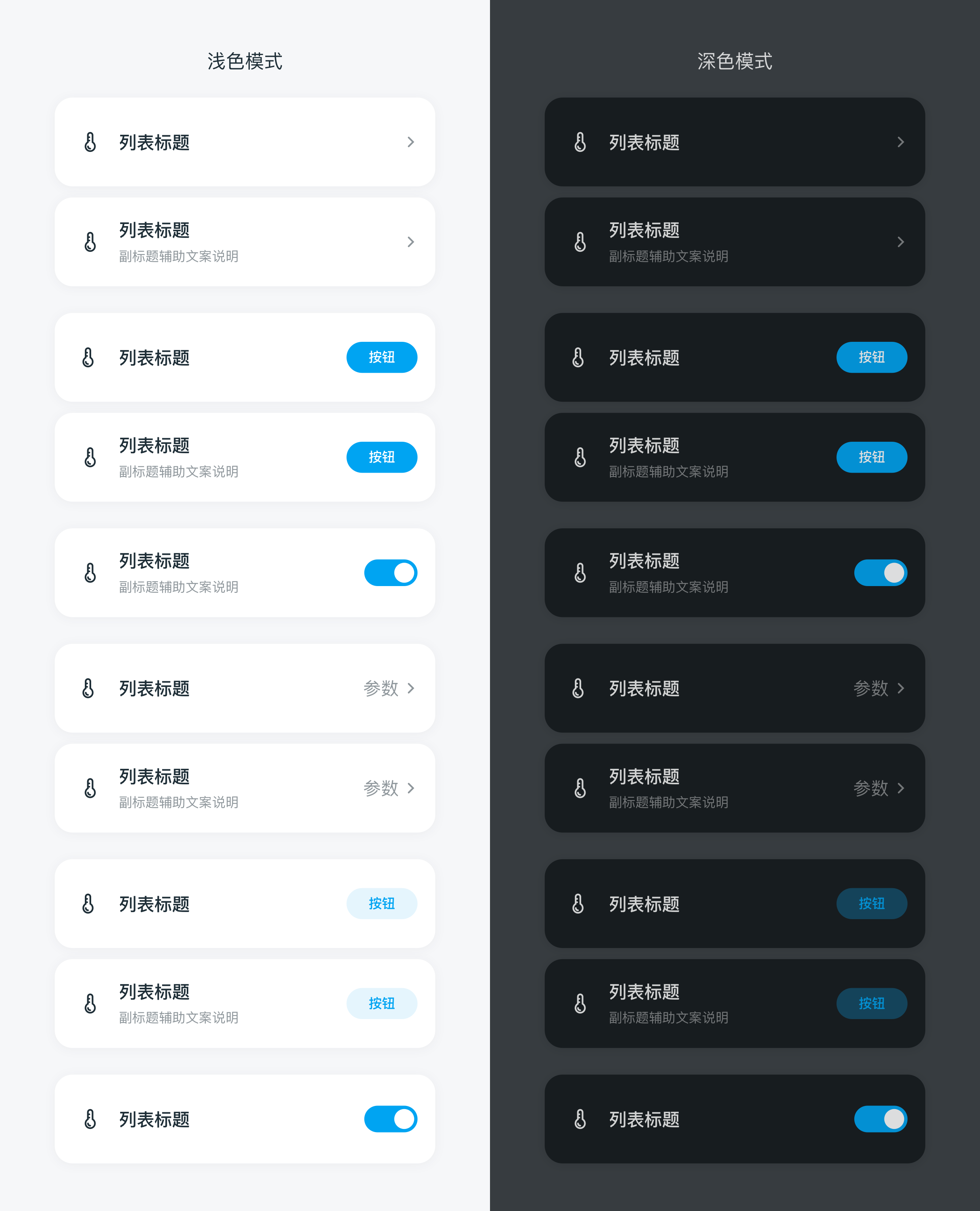 · 文字较多时特殊处理: 12pt 浅色模式时 #616c73,深色模式时 #FFFFFF 60% (整页面统一处理,出现较少)