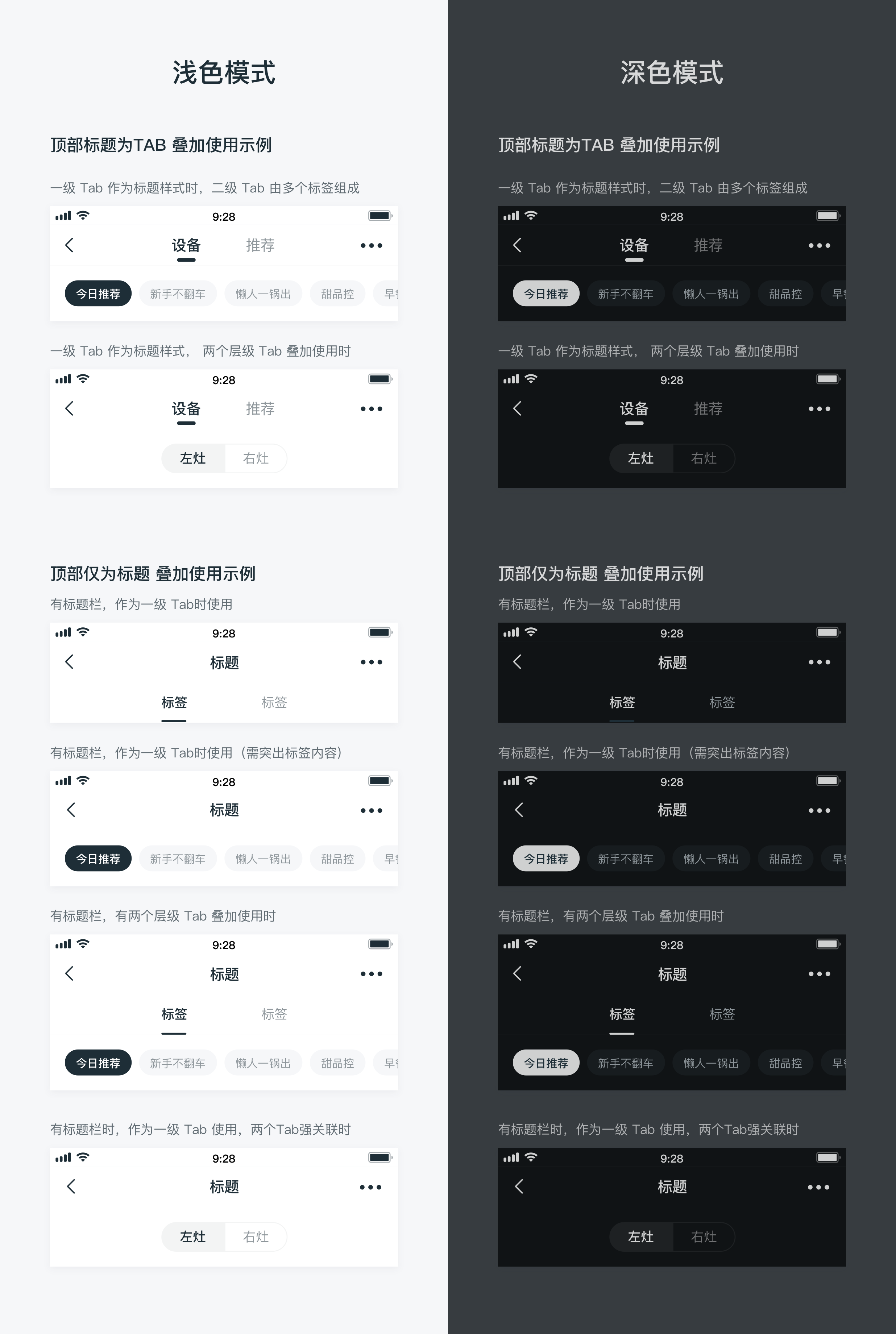 - 常用于 Tab 切换页面,目前支持icon、text形式的顶栏,详细可见config.js